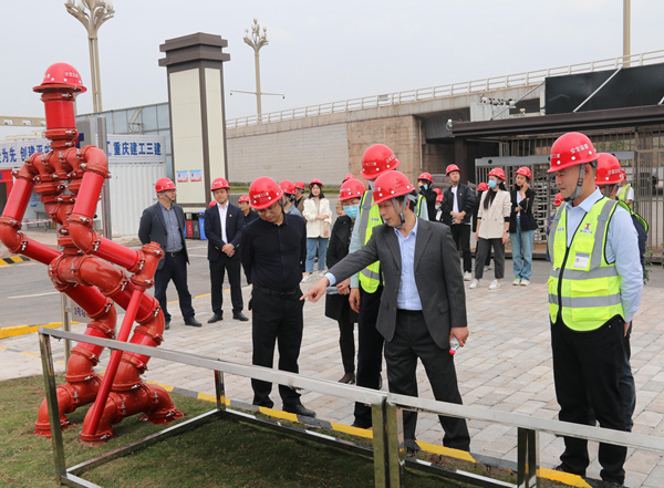 會前,與會人員實地參觀了科學谷二期項目安全文明施工建設現場,聽取項目負責同志介紹工程建設情況,詳細了解了項目部黨團工作亮點。魯學佳充分肯定了黨建引領企業高質量發展的實際成效。