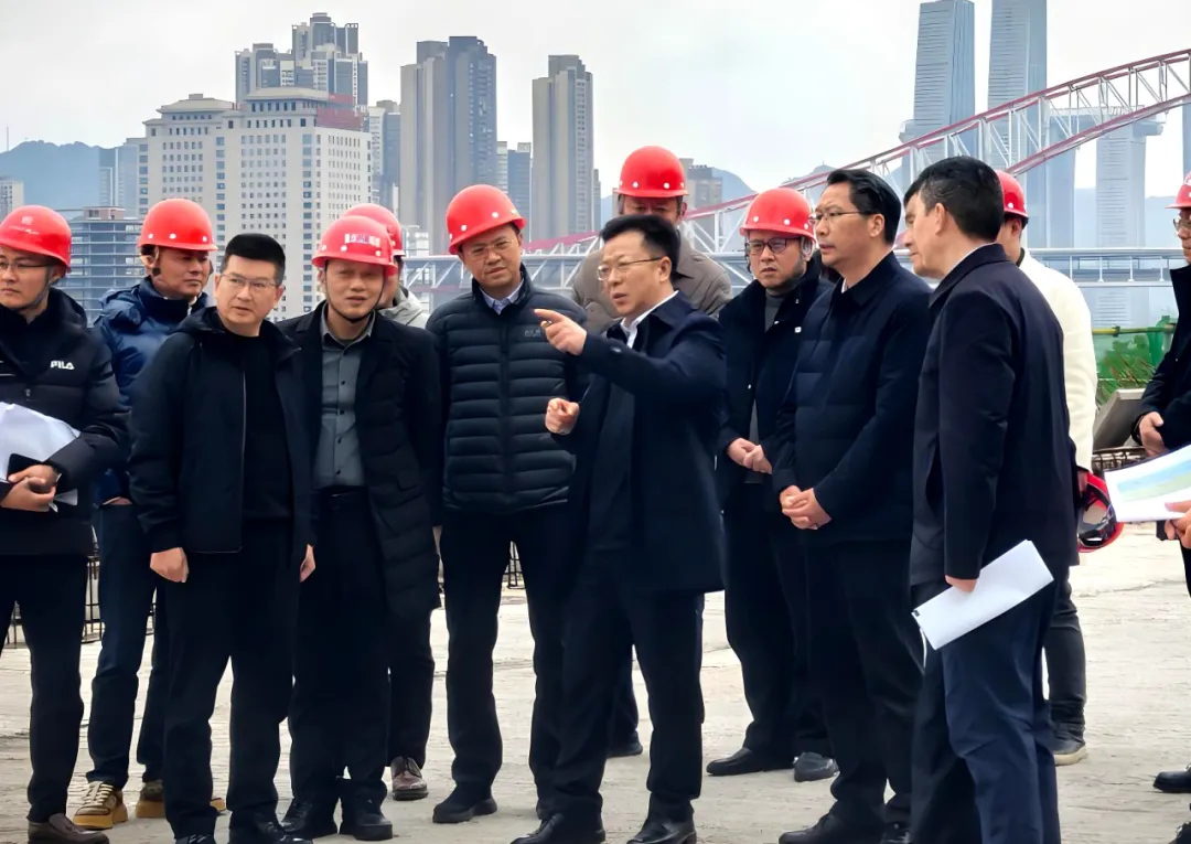 2月7日,江北區委書記陶世祥,區委副書記、區長陳德川來到由重慶建工城建集團實施的北濱路東延伸段(一期)項目調研節后復工復產工作。區委常委、區政府常務副區長曾偉,區政府副區長楚斌,集團黨委副書記、總經理周進參加。
