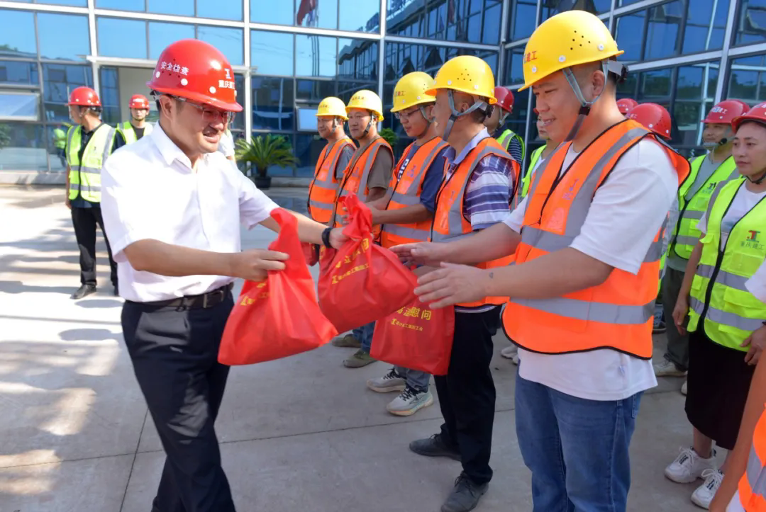 “大家辛苦了!天氣很熱,一定要注意防暑降溫。”來到項目部,孫立東與員工親切握手交談,關切詢問大家的作息時間、工作強度、生活情況等,對大家克服高溫酷暑千方百計全力推進項目生產建設表示感謝,叮囑大家在堅守崗位的同時要注意自我防護,并將慰問品親手送到項目員工手上,同時要求項目扎實做好高溫天氣安全生產有關工作,落實好防暑降溫各項措施,為一線作業人員提供良好服務保障,確保安全和健康。