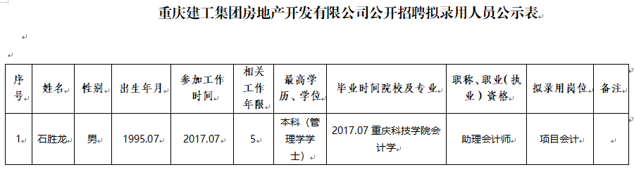 附件:重慶建工集團房地產開發有限公司公司2022年公開招聘擬聘人員公示表