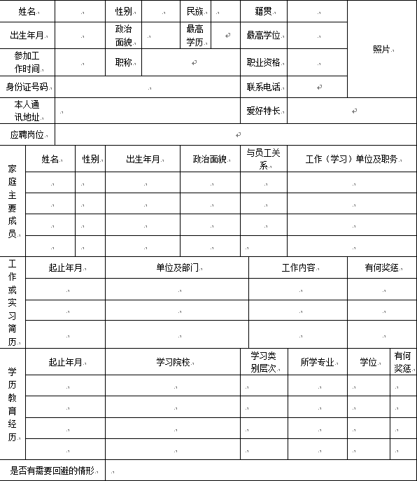 重慶嘉寓房屋租賃有限責任公司應聘登記表